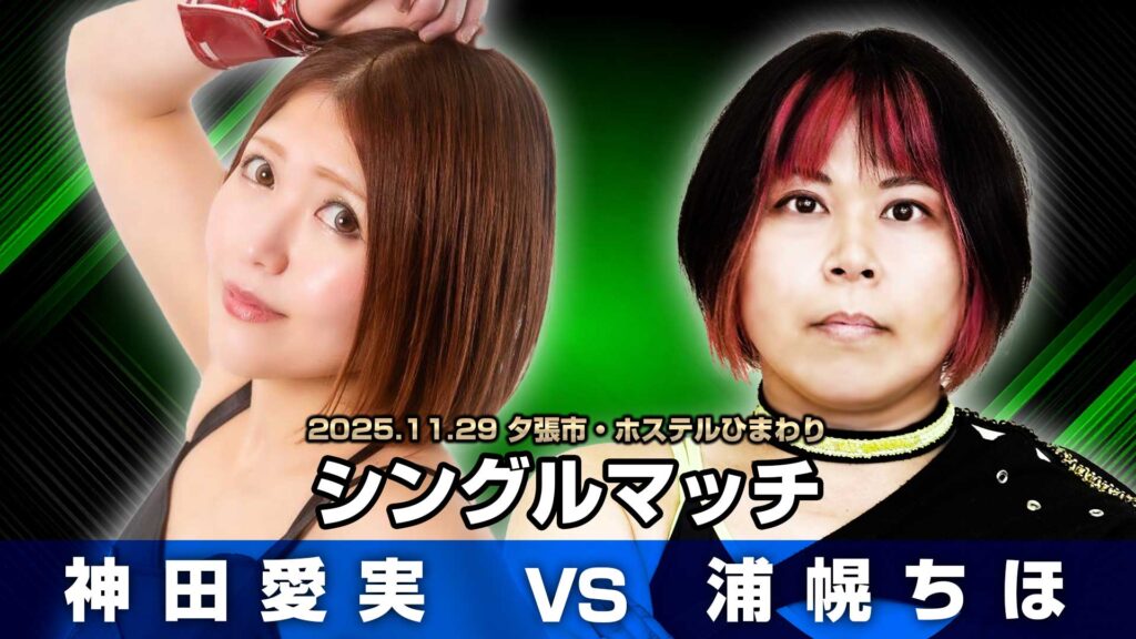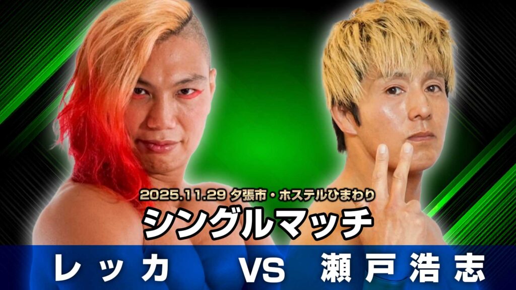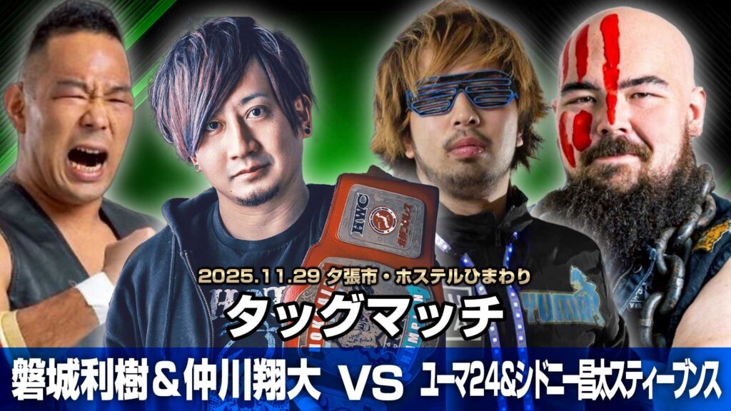 | 日時 | 2025.11.29(土) 17:00開場/18:00試合開始 17:20 夕張太鼓保存会「竜花」演奏 17:40 ちびっ子プロレス |
