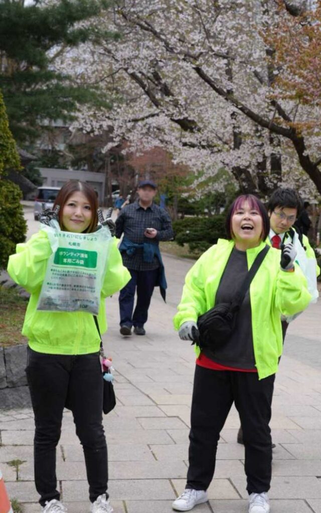 2026年4月29日、北都プロレスより河原成幸理事長、神田愛実選手、浦幌ちほ選手の3名が、札幌中央倫理法人会の主催する中島公園周辺での清掃活動に参加いたしました。